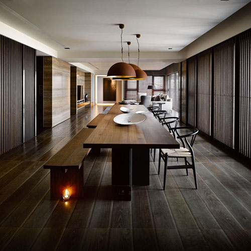 空間主體結(jié)構(gòu)由粗壯的木質(zhì)梁柱支撐,我們將主要構(gòu)件的表面全部涂裝成統(tǒng)一的深邃的老木色調(diào),有種沉淀著歷史滄桑的厚重美感。歲月有痕,質(zhì)樸依舊。空間的質(zhì)地亦或色彩,還有這些被時間溫柔洗滌過的物品,無論置于何處,都自然而然地流露出樸素自然的格調(diào)。它們不僅裝飾著空間,也在不經(jīng)意間傳遞出一種隨性自在的生活態(tài)度。