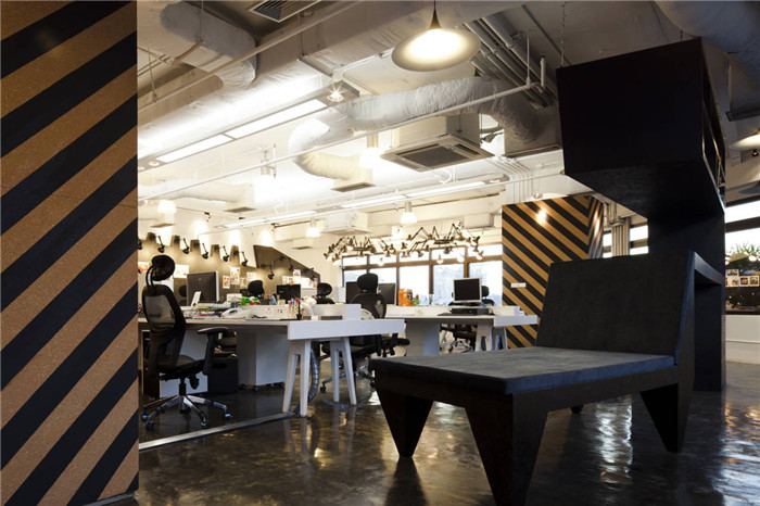 這間辦公室空間設(shè)計啟發(fā)于許多的生活靈感,比如生活用品,形成了積極向上的工作環(huán)境。辦公室主要分為兩個部分,創(chuàng)造區(qū)和管理區(qū)。創(chuàng)造區(qū)設(shè)計比較開闊,色彩鮮明,滿足員工思維發(fā)揮空間需要。管理區(qū)就相對暗淡,但也有亮色裝飾。
