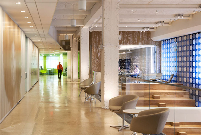 文章導(dǎo)讀:潘多拉媒體公司曼哈頓辦公室位于曼哈頓市中心,這間辦公室給人一種抽象藝術(shù)感,很有設(shè)計感。下面就同上海勃朗辦公室設(shè)計公司的小編一起欣賞這間獨具魅力的辦公室設(shè)計效果圖吧!