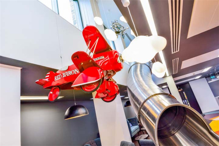 明亮的空間、跳躍的色彩,將娛樂休閑與工作融于一體,不拘一格的辦公空間設(shè)計令工作更富于激情與創(chuàng)意。精致的燈具設(shè)計,細心的燈光設(shè)置,有趣的滑以及休閑公共區(qū)域,無不吸引人注目。