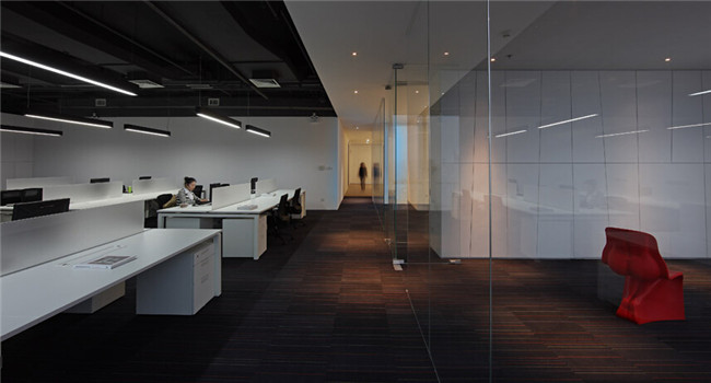 黑白的主色彩基調(diào)配搭部分紅、黃等鮮亮的色彩,用大色塊來反襯干凈清新環(huán)境里的活躍氣氛;在辦公桌椅的選擇上,設(shè)計(jì)師為他們選擇了有設(shè)計(jì)感的座椅,特別還有人體形象在上面,是希望強(qiáng)調(diào)服裝設(shè)計(jì)師對(duì)于人體流線的敏感,也更符合服裝設(shè)計(jì)公司的前衛(wèi)氣氛。
