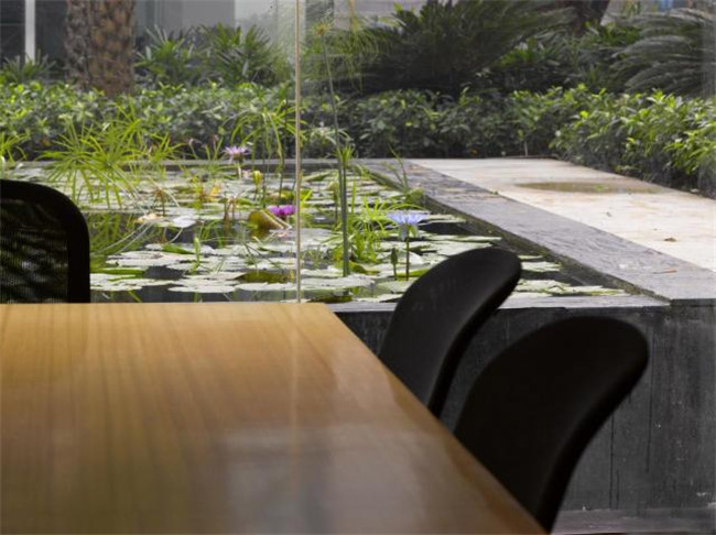 設(shè)計(jì)以一個(gè)獨(dú)特的堆疊系統(tǒng)生成出更加多樣的開闊空間,如院落、涼亭、露臺(tái)、綠色屋頂?shù)鹊龋蛟斐鲆粋€(gè)極為舒適的辦公室。室內(nèi)外不同項(xiàng)目不同元素之間相互疊加,共同創(chuàng)造了一個(gè)生動(dòng)的辦公空間。