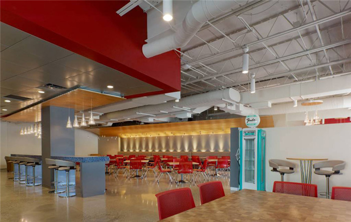 Fender (芬達(dá))是一個(gè)全球知名的品牌。設(shè)計(jì)者堅(jiān)持秉承開放心態(tài)和包容兼收的態(tài)度,認(rèn)真了解公司文化,把公司的文化和精神用辦公空間設(shè)計(jì)體現(xiàn)出來(lái)。Fender 認(rèn)為其公司形象和品牌不僅是一把吉他,更將推廣搖滾音樂視為公司文化不可分割的一部分。最重要的是,這種品牌形象通過他們的辦公空間傳播開來(lái),因此最終打造出反映公司文化的辦公空間,并為其提供了真實(shí)展現(xiàn) Fender 形象的完美媒介。