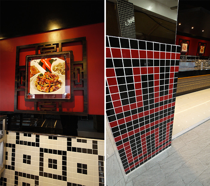 配合業(yè)主主打的中式菜單,餐飲空間在紅色的主題色上,以紫檀木、馬賽克、茶鏡、人造石、窗花、烤漆玻璃、木紋美耐板等質(zhì)材,拼畫出東方禪風(fēng)的圖騰感,將快餐跳脫家庭菜的定位思維,提升空間質(zhì)感之余,一并提攜商品的美味印象。