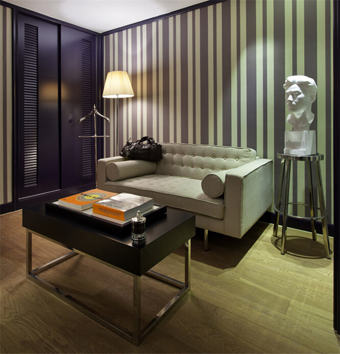 整個(gè)酒店設(shè)計(jì)融入了眾多藝術(shù)風(fēng)格元素,每個(gè)套房風(fēng)格和諧統(tǒng)一,運(yùn)用不同色彩的壁紙來營造冷、暖兩種格調(diào),立面與地面之間靈活使用條紋,來將客房的視線得到充盈。搭配干凈整潔的家具,空間顯得簡約不凡,現(xiàn)代藝術(shù)的融入成為點(diǎn)睛之筆,為酒店帶來更多趣味。