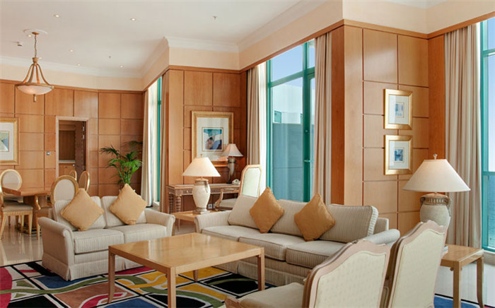 酒店擁有現(xiàn)代優(yōu)雅的客房、精致的套房,以及齊全的室內(nèi)外設(shè)施,到處彌漫著度假酒店的活力氛圍。迪拜朱美拉希爾頓度假酒店的套房設(shè)計(jì)風(fēng)格非常高雅,設(shè)有落地大窗和兩個(gè)能欣賞到海景的陽(yáng)臺(tái),此外還有兩張大床或一張?zhí)卮蟠病?