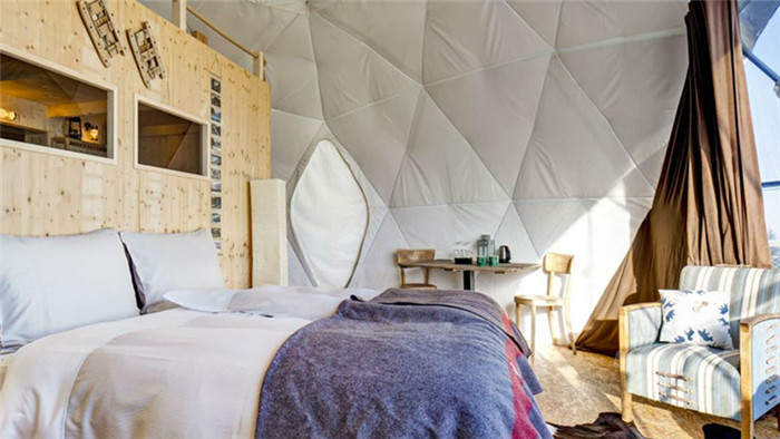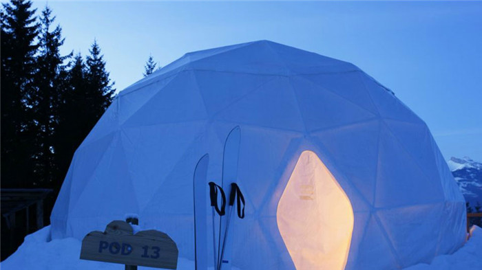 Whitepod生態(tài)高端度假酒店擁有15棟圓頂帳篷,包括10間標(biāo)準(zhǔn)房和5戶家庭房,各個房間散落布置著,旅客可在以這里體驗到不一樣的體驗??腿思瓤梢韵硎芴貏e的住宿體驗,又可以親近自然,欣賞到美麗的自然風(fēng)光,可謂悠閑自得。