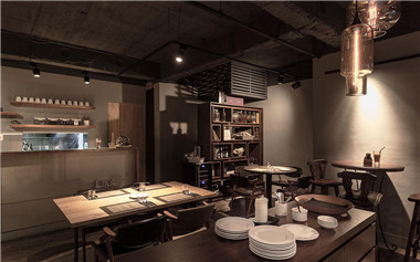 工業(yè)風與日式禪意混搭的鴛鴦火鍋餐廳裝修設計案例