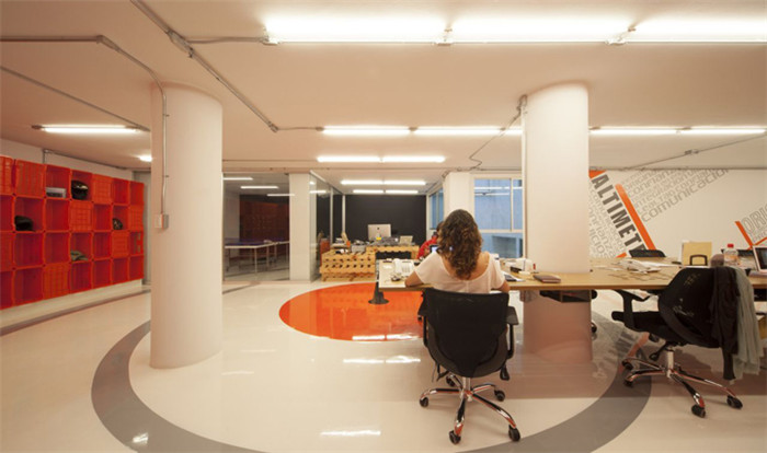 辦公室室內(nèi)裝修設(shè)計(jì)也很是完美。白色的吊頂、白色的墻面、以及光潔的白色地面襯托著依柱而設(shè)的工作臺成為室內(nèi)空間的中心,與環(huán)形地面設(shè)計(jì)相呼應(yīng),形成一個(gè)完美的空間結(jié)構(gòu)。簡練而獨(dú)創(chuàng)的設(shè)計(jì)不僅經(jīng)濟(jì),而且節(jié)省時(shí)間與施工成本,還帶來非常獨(dú)特的視覺效果,并且非常實(shí)用和環(huán)保。