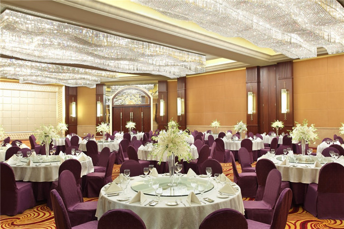 這個(gè)五星級(jí)酒店空間設(shè)計(jì)以中式風(fēng)格為主。酒店空間運(yùn)用水晶吊燈,配以耀眼的光芒,營造出一種華麗的視覺效果。在材料上,設(shè)計(jì)師運(yùn)用了不同的大理石材料、地毯、不銹鋼等材料,打造出一個(gè)豪華尊貴的酒店空間。