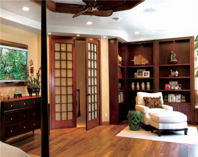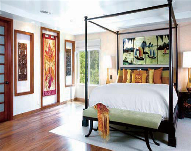 文章導讀:亞洲的熱愛將你引向東方,同時你又熱衷于奢華高端的度假區(qū)時,你很自然地會令自己的寓所激發(fā)出這種美感。業(yè)主極其希望寬敞的主臥套間內能展現出這些東方的設計和文化。設計師在進行別墅設計改造時令其臥室的位置不改動,將原先一張不太使用的書桌的空間納入了全新的浴室中,并將它改成了一個步人式衣柜。