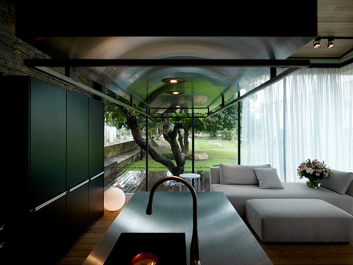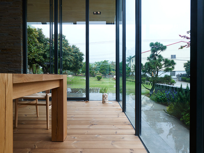品茶、讀書、賞景、休憩與微笑,對于一位邁向遲暮之年的長者,于卸下多年來撫育莘莘學(xué)子的重責(zé)大任后,所求便不過寥寥,看盡過影千帆、人來人往,洞透人世間的繁華普照,如今長者更渴望回歸初生的觸覺,設(shè)計師以實木、石材搭構(gòu)的原始屋,便具備如此返璞歸真的純真條件;簡潔利落的現(xiàn)代硬裝,則在機能前提下,響應(yīng)身體不可逆的漸弱需求。