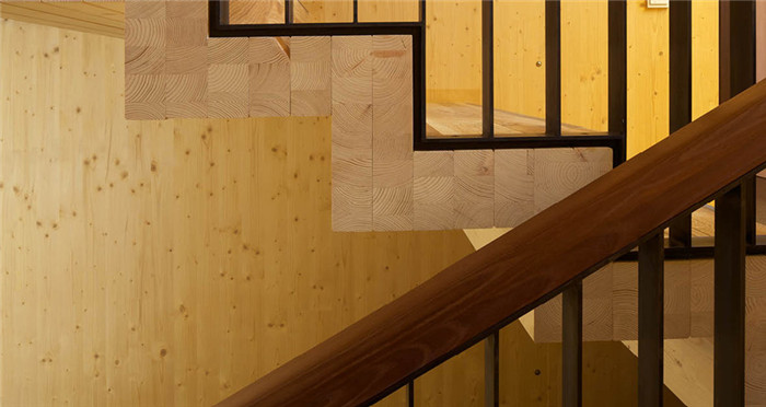 辦公樓有兩個出口,位于這座辦公樓的兩面。一個面向道路,一個與公司的木材加工現場鏈接起來。而辦公樓主樓有四川,位于之前的舊地基上面,其中還有一層是地下室。