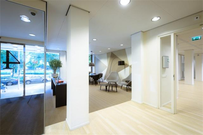 設(shè)計師在建筑前身基礎(chǔ)上設(shè)計了AMS-IX的辦公室,旨在打造出一個符合客戶身份標示以及建筑本身特點的室內(nèi)設(shè)計空間。最終設(shè)計出ca.60的工作空間,10個會議室和一個董事會辦公室(頂層),實現(xiàn)了一個chique設(shè)計風格。