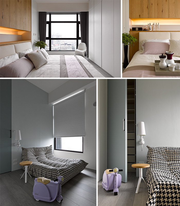 書(shū)房與小孩的游戲間,親切體現(xiàn)小世界的知足美,利用木門表框世界與居家的即景,無(wú)論對(duì)內(nèi)對(duì)外,都能擁有足夠的深度體驗(yàn)。